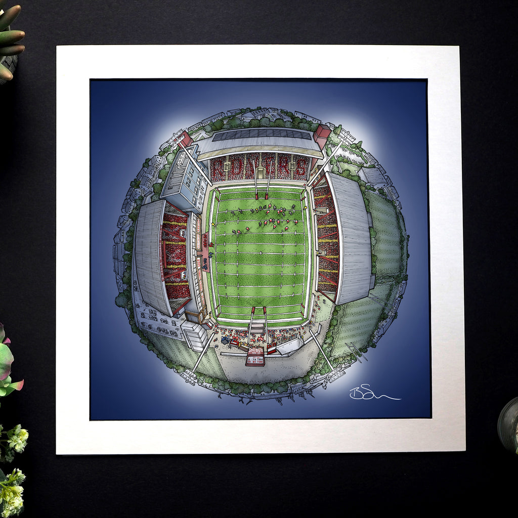Capture the glory of Hull KR's unforgettable 2025 treble triumph with this striking hand-drawn illustration of Craven Park, the Pride of East Hull! This meticulously detailed artwork celebrates the Robins' home ground, completed in honour of the club's historic achievement and is the perfect gift for devoted KR supporters! Commemorate an extraordinary season, whether you're marking a personal milestone or honouring the team's success, this illustration is a timeless tribute to passion, pride, and rugby league sporting excellence!