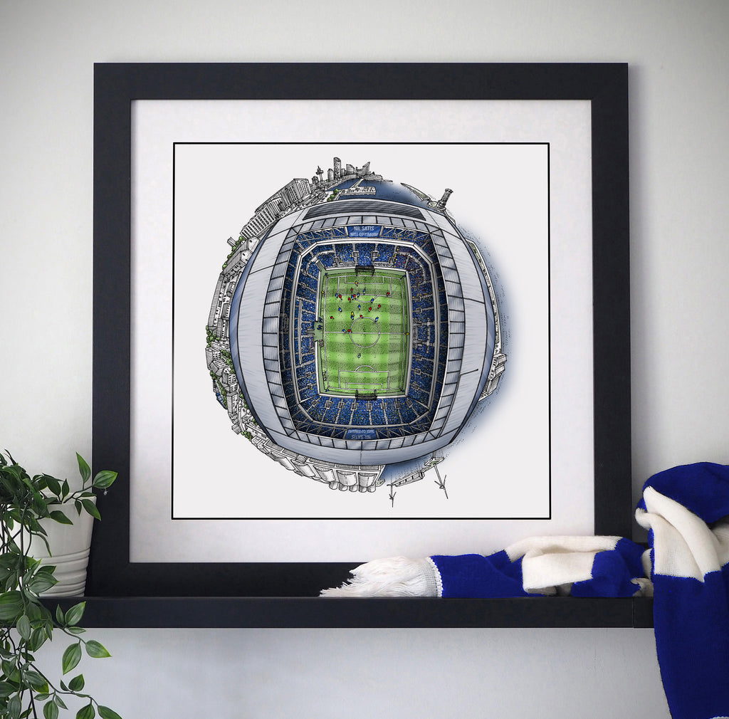 Celebrate Everton's thrilling new era with this beautifully hand-drawn illustration of The Hill Dickinson Stadium. Ben Staves has captured the modern architecture and grandeur of the Toffees' state-of-the-art home, a landmark that marks the beginning of an exciting chapter in the club's storied history. With cutting-edge facilities this stadium represents Everton's ambition and vision for the future. An unmissable gift for devoted supporters, this globe serves as a stunning tribute to where new memories will be made and legends will be born!